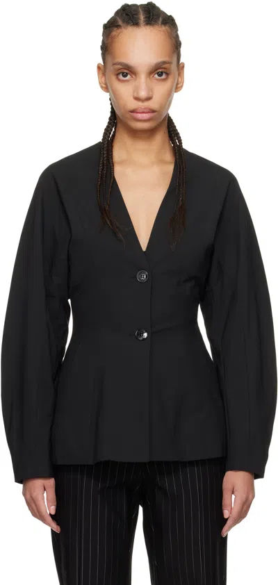 GANNI Black Fitted Drapey Melange Blazer In Multi