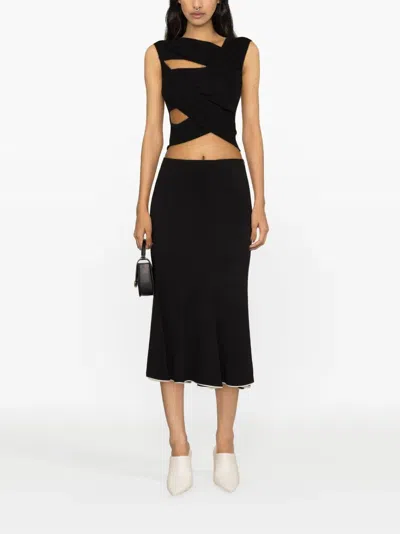black jersey texture cut-out detailing slim cut asymmetric neck sleeveless asymmetric hem cropped. Viscose Viscose 100%.
