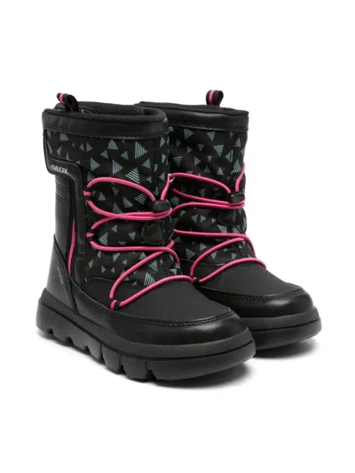 黑色 正面系带 背面提鞋环 防水 几何印花