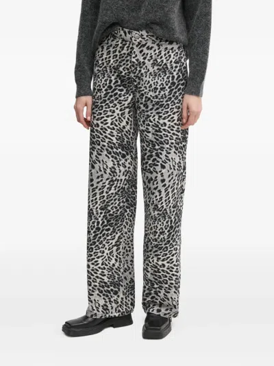 浅灰色 豹纹 隐藏式拉链纽扣开合 腰带袢 经典五口袋