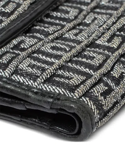 Canvas and Leather Trim|-|Fair|This sturdy and stylish wallet by Givenchy is perfect for small bags. Crafted from signature canvas and leather trims, this silver & black creation has a trifold style. It has a front flap with logo detailing that opens to a leather & fabric interior with several slots to place your necessities.