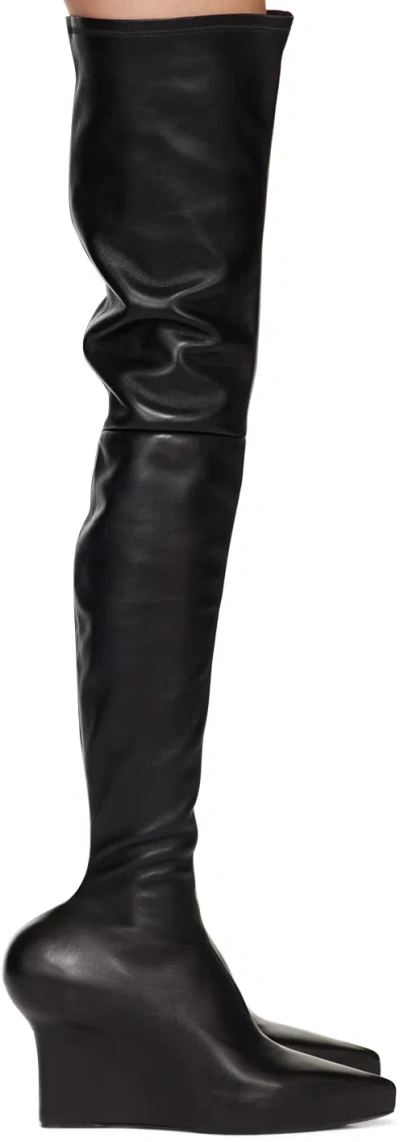 Thigh-high paneled nappa lambskin boots in black. · Pointed toe · Zip closure at inner side · Partial bonded jersey lining · Covered wedge heel with rubber injection · Leather sole · Platform: H1 in · Heel: H3 in Supplier color: Black