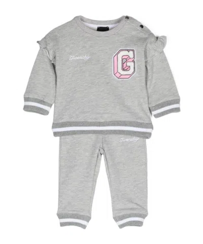 Top: Crew neck, long sleeves, ribbed hem and cuffs, G logo on the front, logo on the back, and snap open and closed at the shoulders. Long: Elastic drawcord waist, two diagonal side pockets, front logo.