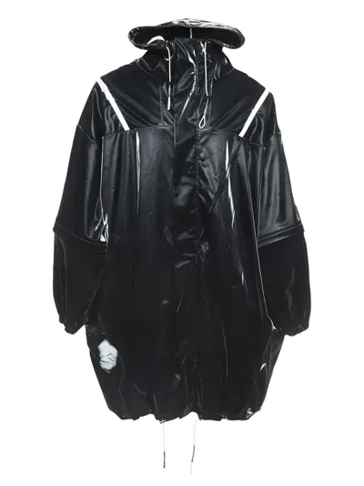 黑色 亮面面料 白色拼接细节 抽绳兜帽 拉链开合 状态:非常好。这款典藏臻品商品状态非常好,无损坏迹象或使用痕迹。