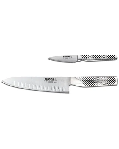 Meet the perfect kitchen cutlery set. The Global 2 piece chef's knife set includes 2 essential blades that you will use daily. This set includes a 7 Inch Fluted Cooks Knife (G-78) & a 3 Inch Paring Knife (GSF-46).