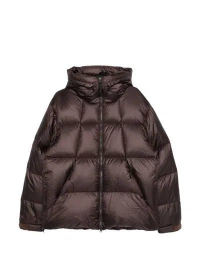 深棕色 防撕裂格纹质感 羽绒填充 抽绳兜帽 拉链