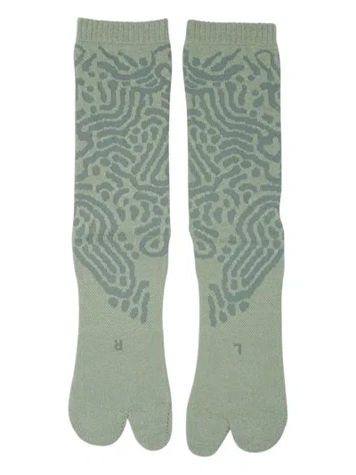 鼠尾草绿色 抽象花纹 双趾设计 罗纹边 同色系缝线细节 请注意,拆封后的袜类商品无法退换。