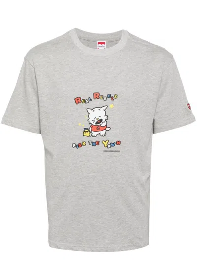 灰色 棉 平纹针织纹理 胸前饰有图案印花 衣袖饰有logo贴花 平直下摆