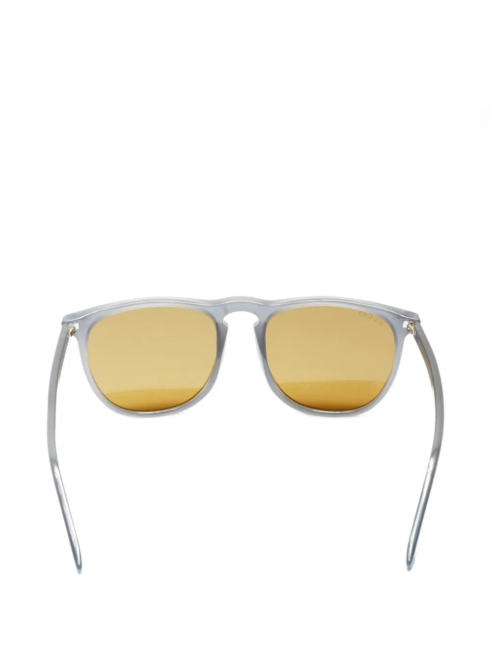 grey square frame logo detail tinted lenses nose pads straight arms Condition: GOOD. This previously owned and used item is in good condition with minimal signs of use. This may include fading of material or plating and scratches. These glasses come with a protective case.
