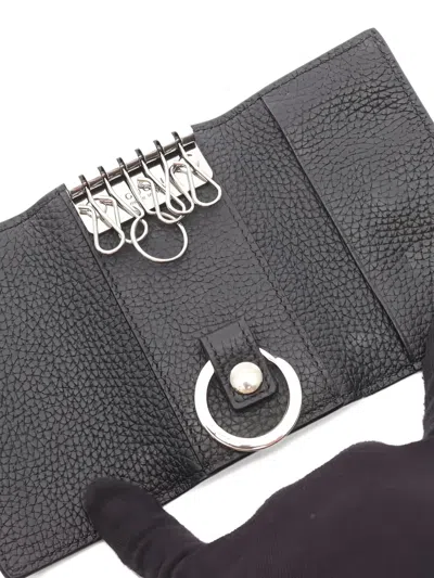 黑色 皮质 六个钥匙扣 logo细节 摁扣 银色五金配件