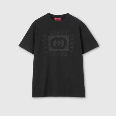 Cotton jersey T-shirt with GUCCI print, an essential piece for any wardrobe. Made from soft cotton, it features an elegant and modern design, with refined details that make it perfect for any occasion. Add it now to your wardrobe for a unique touch of style.