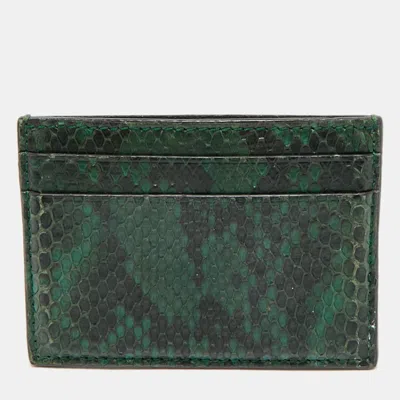 This Gucci womens card holder features exotic python leather in dark green and black tones. Designed with multiple slots and a slim profile for neat storage.