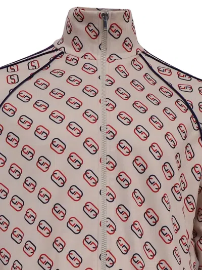 beige logo print striped detail stand collar zip closure ribbed hem ribbed cuffs Condition: EXCELLENT. This previously owned item is in near-perfect condition with no signs of damage or use.
