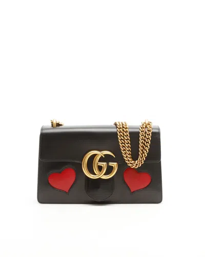 Gucci Medium GG Marmont Heart Bag• Black leather with red heart and lip appliqués• Gold-toned hardware• Sliding chain strap• Beige fabric lining with three internal compartments• Flap top with GG push-lock closure• VintageOverall Preloved Condition: Very Good Condition.Exterior Condition: Very Good. Light trace of use.Interior Condition: Very Good. Light trace of use.Hardware: Shiny with light scratches.Delivered with no accessoriesMade in ItalyDimensions:Height 17 cmWidth 27 cmDepth 4 cmStrap drop 29/55 cmPlease note that the majority of our items are vintage and therefore have tales to tell unless stated otherwise. Therefore, please look at pictures, descriptions and measurements provided as they give you the best idea of the story this item has to tell.