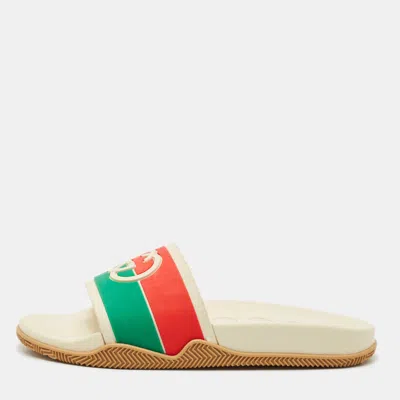 These Gucci pool slides make a splash in multicolor rubber featuring Interlocking G branding and web stripes. Lightweight and playful they're the perfect finishing touch for beachwear resort dressing or statement loungewear looks.