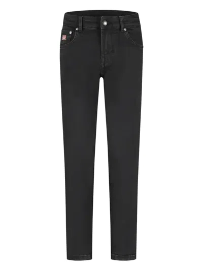 black logo patch belt loops classic five pockets concealed fly and button fastening