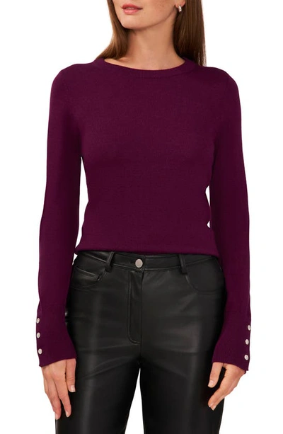 HALOGEN Button Cuff Cotton Blend Sweater In Deep Ruby