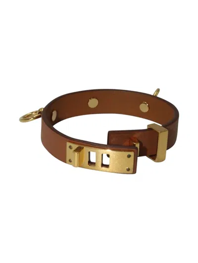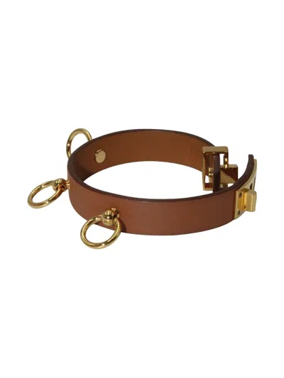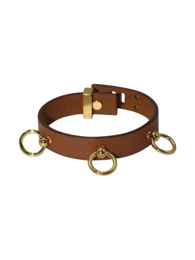 褐色 皮质 金色五金配件 钩扣 三个金色戒指 每日佩戴或外界接触可能会降低宝石与黄金表面的光泽度。请使用非腐蚀性、珠宝专用清洁产品进行保养。