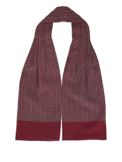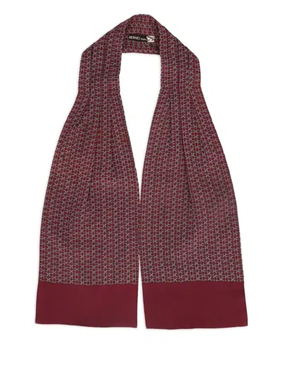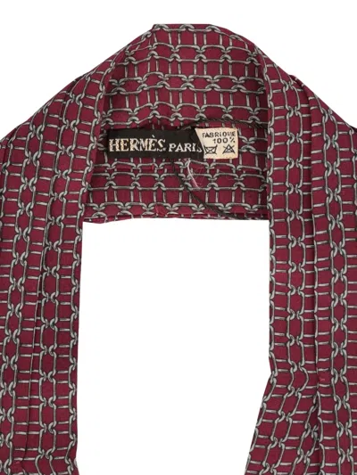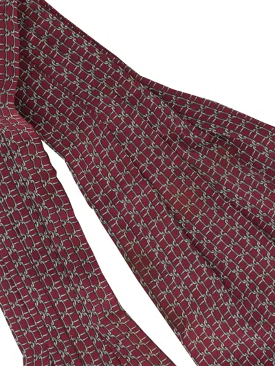 bordeaux red silk contrasting trim chain-link print wraparound style Condition: GOOD. This previously owned and used item is in good condition with minimal signs of use. This may include fading of material or plating and scratches.
