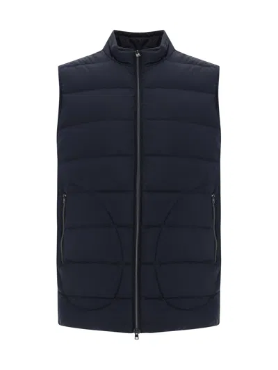 Vest by herno, high collar, front panel zipper closure, two front zippered welt pockets, quilted design, monochrome pattern, adjustable waistband via concealed drawstring, regular fit. Composition: 100% % Polyamide