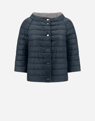 HERNO ナイロンウルトラライト リバーシブル ケープ In Blue/grey