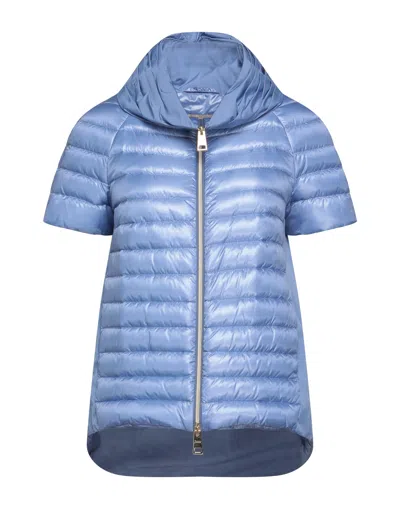 techno fabric, no appliqués, solid color, turtleneck, single-breasted , short sleeves, goose down interior, zipper closure, multipockets, contains non-textile parts of animal origin, single-breasted jacket , Color: Pastel blue , Size: 6