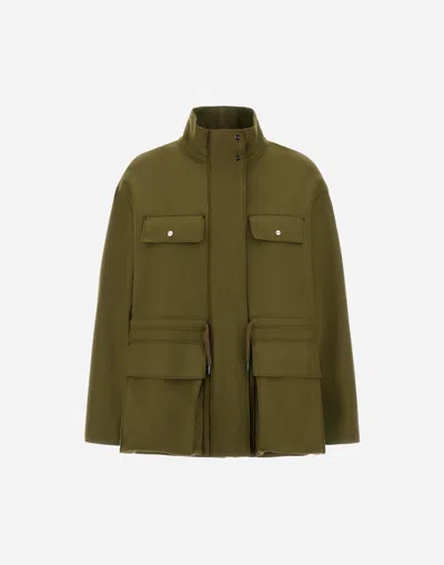 橄榄绿色 高领 摁扣开合 盖袋 长袖