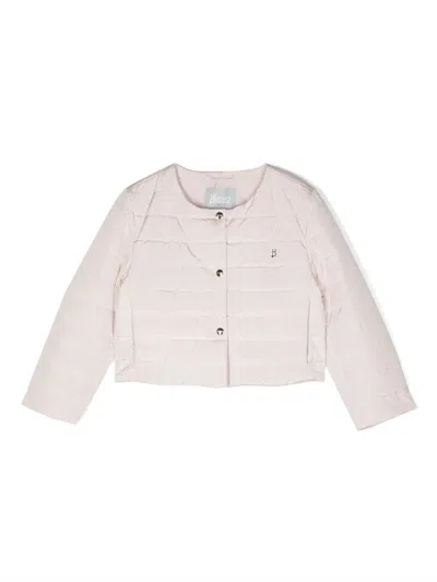 衬垫设计、胸前饰有logo印花、正面饰有摁扣、长袖、两个正面平袋。