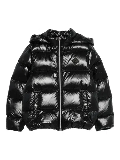 黑色 绗缝设计 标贴 兜帽 拉链 正面拉链口袋