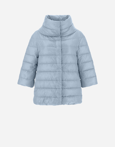 Sofia down jacket, a mini cape with jewel sleeves in the unmistakable Herno style that boasts a light and delicate designHigh neck. Concealed front fastening. Jewelled sleeves. Two side pockets. Padded design. Quilted. Regular fit. Straight hem. Color: light blueMaterial: 100% Polyamide