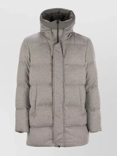 HERNO Long Hooded Jacket High Collar Quilted In Brown