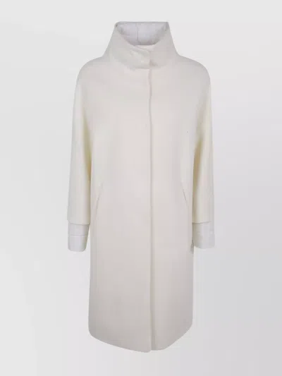 白色 绗缝细节 拉链 高领 长袖 背面隐藏式开合