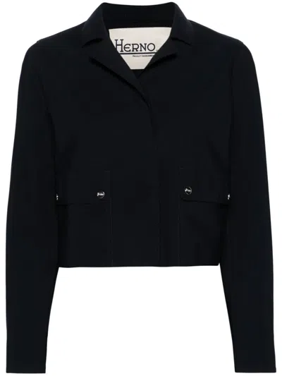 黑色 logo雕刻银色五金配件 平驳领 正面饰有摁扣 长袖 侧置两个摁扣口袋 无衬里 平直下摆 短款