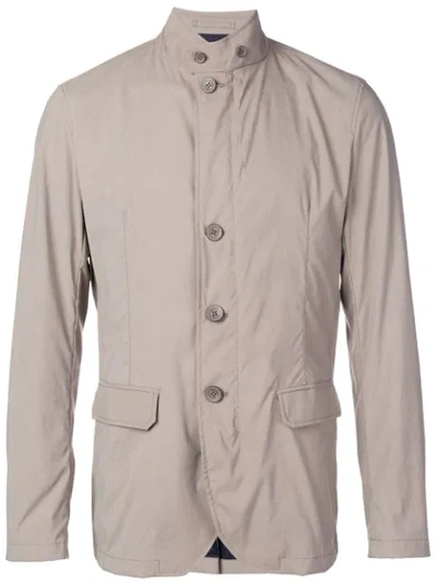 Herno combines Italian style and craftsmanship with utilitarian elements to create outerwear that is well-suited for those who are fashionable. This beige Ripstop jacket from Herno features a buttoned mandarin collar, a front button fastening, side pockets, long sleeves and a slim fit.