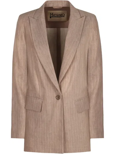 PIN-STRIPED MOTIF PEAK LAPEL COLLAR HEM WITH DOUBLE BACK SLIT 1% POLYAMIDE, 52% LINEN, 45% COTTON, 1% METAL, 1% VISCOSE | Herno Women's Single-Breasted One Button Jacket in Beige | Size 44 | GA000298D17135 Color 1985