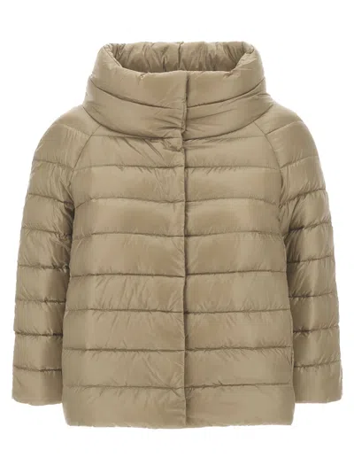 I came to be at the water's edge, snow-topped mountains rising up behind me. My name, almost majestic, comes from the stunning villas around Lake Maggiore, just like my sisters' names. I am Sofia, the newest, ultra-functional addition. A mini cape with jewelled sleeves in the unmistakable Herno style, made from 200 g Ultralight nylon. The injected padding in ultra-fine goose down and the silky-effect nylon make the garment extremely lightweight and delicate to the touch. Regular fit Funnel neck Concealed press-stud fastening Jewelled sleeves Welt pockets Performance: WR Treatment Herno Icons 100% PA - MAIN FABRIC: 100% POLYAMIDE / NYLON LINING: 100% POLYAMIDE / NYLON TRIMMING: 55% COTTON 45% POLYESTER PADDING (FEATHER): 90% DOWN 10% FEATHER