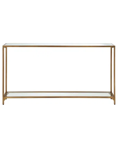 Color/Finish: Gold The Narrow, Simple Profile Of This Iron Console Table Will Make It Perfect For A Foyer Or Any Limited Space. The Clean Lines And Modern Design Are Accented In A Warm Gold Finish. The Top Shelf Is Mirrored, With Tempered Glass On The Lower Shelf. Anti Tip Product Dimensions: 8In X 56In X 30In Some Assembly Required For Indoor Use Materials: Metal Wipe Clean Imported