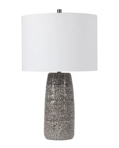Color/Finish: Black Measures Approximately 14In X 14In X 24.5In Handcrafted And Hand-Finished Base Material: Ceramic, Iron Shade Measurements: Height: 10, Top: 14W X 0D, Bottom: 14W X 0D Shade Materials: Kd Round Drum Hardback Shade Color/Finish: Round Hardback Drum Shade In White Linen Fabric With Stitching Around Top And Bottom. Shade Requires Some Assembly. Bulbs Required: 1 X 150W; Not Included Ul Approved Imported