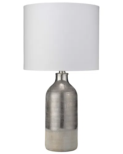 With An Air Of Casual Glamour, The Varnish Table Lamp Elicits A Two-Toned Finish. Dipped In A Pewter Taupe Glaze From Top To About Three-Quarters Down Through The Lamp Body, The Iridescent Sheen Meets The Off-White Ceramic Lamp Bottom To Create Subtle Contrast. The Elegant Warm Silver Meets The Relaxed Neutral Glaze To Create An Organic Imperfect Line, Versus A Strict Formal Stripe. Measures 23.5In High X 12In Wide White Linen Shade Installation Hardware Included Ul Approved Imported