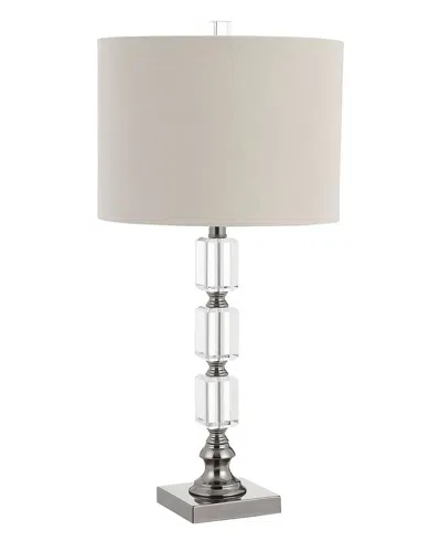Color/Finish: Nickel Measures Approximately 14In X 14In X 28.5In Handcrafted And Hand-Finished Base Material: Metal, Crystal Shade Measurements: Height: 10, Top: 14W X 0D, Bottom: 14W X 0D Shade Materials: Round Hardback Shade Color/Finish: Round Hardback Shade - Light Taupe Linen Fabric With Light Slubbing. Bulbs Required: 1 X 150W; Not Included Ul Approved Imported