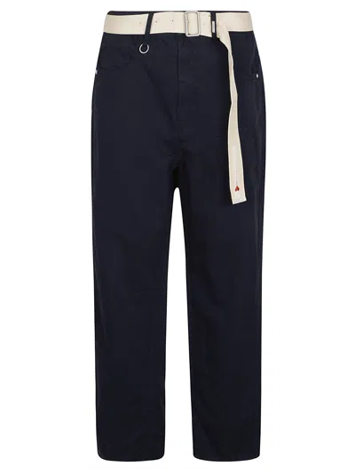 5-pocket trousers in linen and cotton High waist Soft fit Contrasting belt supplied Colour: blue Composition: 72% cotton, 28% linen