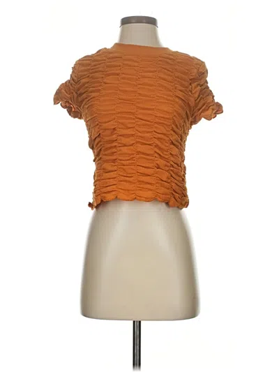 Pre-owned Short Sleeve Top Orange Ruffles Neckline Tops