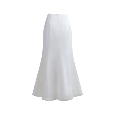 IELLELE Women's White Noel Trio Set Turtleneck Silk Skirt Tulle Fur Overskirt