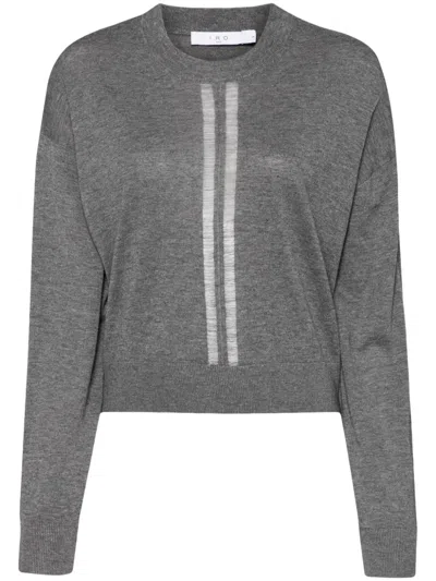 dark grey silk blend round neck long sleeves knitted construction semi-sheer panels ribbed cuffs and hem