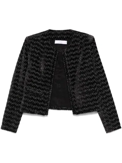 黑色 垫肩 金银丝细节 开襟式