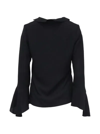 black V-neck ruffle detail long-sleeves flared cuffs Condition: EXCELLENT. This previously owned item is in near-perfect condition with no signs of damage or use.