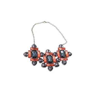 A handcrafted labyrinth choker designed by Iskra, featuring Swarovski crystals in vibrant fuchsia, denim blue, and purple. Set on a silver-plated brass base, this striking piece includes an adjustable chain extension and a secure lobster clasp. Materials: Silver-plated brass base, Swarovski crystals Care Info: Keep dry and avoid chemicals to protect the silver-plated brass and Swarovski crystals.