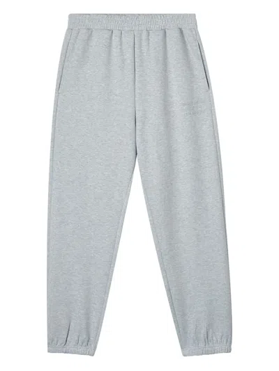 浅灰色 弹性松紧腰边 卷边下摆 两侧饰有口袋 压纹logo