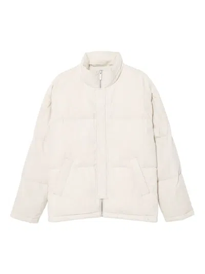 米白色 正面饰有纽扣与拉链 两个侧置平袋 长袖