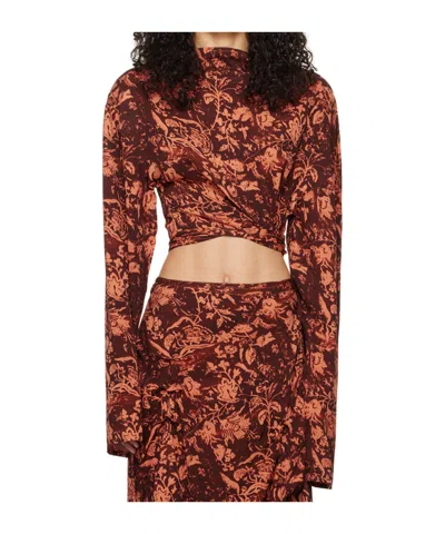 Floral pattern printed throughout.CrewneckSelf-tie straps at cropped hem